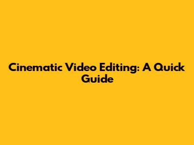 Cinematic Video Editing: A Quick Guide